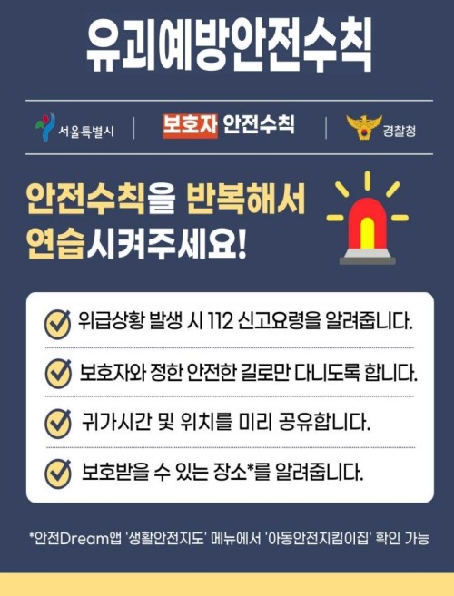 ¿ì¸® ¾ÆÀ̵éÀÇ ¾ÈÀüÀ» ÃÖ¿ì¼±À¸·Î Áö۱â À§ÇÑ ¾Æµ¿ ¹× º¸È£ÀÚ¿ë À¯±«¿¹¹æ ¾ÈÀü ¼öÄ¢À» ¾È³»µå¸³´Ï´Ù.